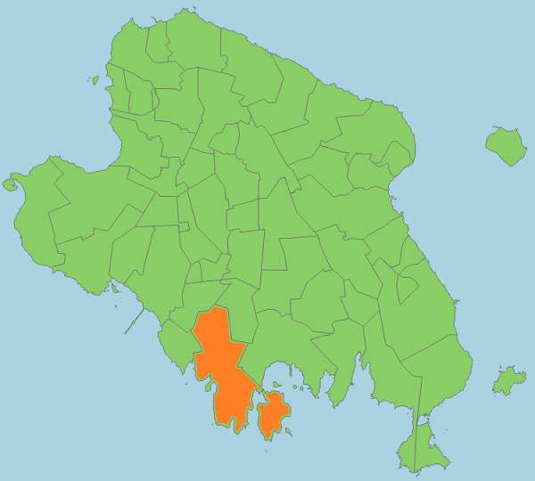 Kaarti vaadates võiks väita, et Lahekülal on Muhu küladest kõige suurem merepiir, kuigi otseselt mere vahetus läheduses asub vaid Lao koht, mis asub Suurlaiul ja tänu Suurlaiule merepiir nii pikaks veninud ongi.